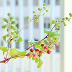 ジュズサンゴ こぼれダネであちこちの鉢からジュズサンゴが増えてます♪ そして蕾が出始めました❣️ 花が咲くのが楽しみです😊 ③④は去年咲いた花です♪ 小さくてかわいい😍のです🩷