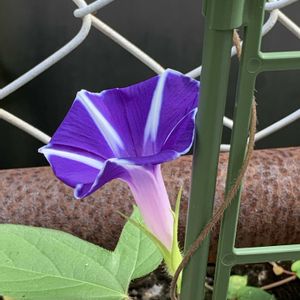 お花の少い中 こぼれ種からアサガオが 地面を這いながら木に登ったりして咲いてます🩵 涼しげな色に癒されてます✨