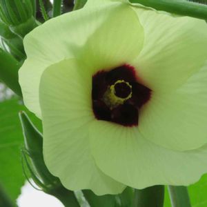 オクラの花です 食べて美味しいオクラ 花も綺麗ですね 花弁も食べれるらしいです😯