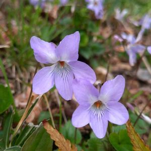 立坪菫(タチツボスミレ) スミレ科スミレ属の多年草。人家周辺から山地まで至るところに生える。日本に60種ほど、変種も含めると200種ほど分布するスミレの中で最も普通に見られ、かつ分布も広い。花期は2~5月、花は淡紫色だが色の濃淡には個体差があり、稀に白やピンクがある。葉はハート形で長い柄がある。葉の付け根に櫛の歯状に細く裂けた托葉がある。花弁のある花が咲き終わると、蕾の形をした閉鎖花が秋遅くまで次々に咲き、果実を盛んにつける。熟した果実は上を向いて3裂し、裂けて舟形になった果皮が乾燥して両側が徐々に閉じるようにして圧力をかけ種子を弾き飛ばす。種子にはエライオソームがついていて蟻が運ぶ。 スミレには沢山種類があって見分けがつかないが、まず初めに地上に茎があるかないかに分ける。タチツボスミレは地上に茎がある有茎種の代表。 名前の『タチ』は立ち上がるという意味。本種は咲き始めは普通のスミレと変わらないが、花が初期から中期ぐらいになると茎が次第に立ち上がってきて高くなるので『タチ』がついた。ツボは中庭のこと。中庭と同じでどこでもよく見かけ、立ち上がるように咲くスミレという意味。 出典『散歩の草花図鑑』『四季の野の花図鑑』