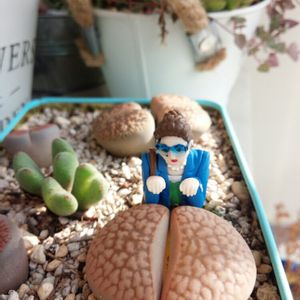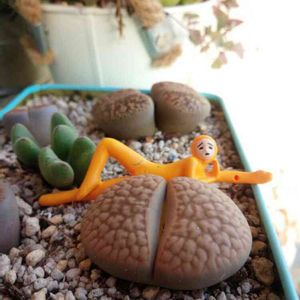 こちらで見かけた『息子さんにイタズラされたリトープス』に敬意を評して( ´艸`) ゴルフの練習ー※傘が曲がってるのは元からですw