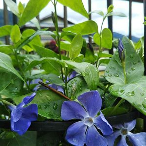 今日のお花 雨上がりの☔🔆🔅 ツルニチニチソウ 🌏🧊💙 昨年は葉っぱだけでしたが、今年はツボミもいっぱい(•ө•)♡