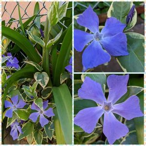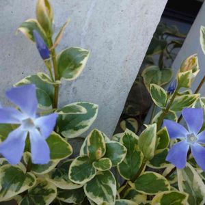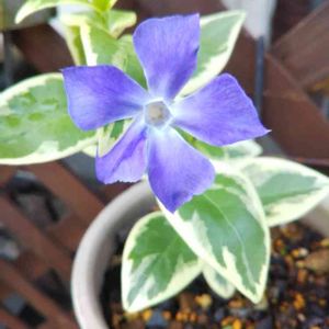 💙ツルニチニチソウの花が、咲き始めました 斑入りの葉っぱも🌿生き生きしてきました 可愛いね💙