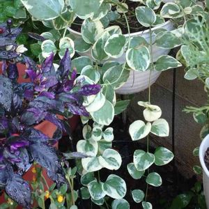 斑入りツルニチニチソウ、☁️からちょっとの晴れ☀️まで暑くなります、お互い水分不足を忘れずに、鉢花遊びしましょう。