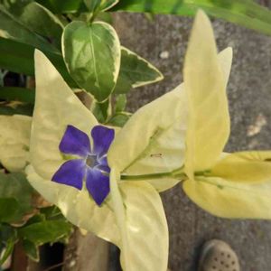 我が家の庭の 住人さんの紹介 この前のpicの ツルニチニチソウの 蕾が開いた黄色い葉 とのマッチングが❗グーgoo