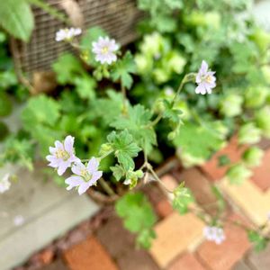 バスケットの寄せ植えに使ったゲラニューム 小さい桜型の花とフリルのような丸葉が可愛い フウロソウの一種で春から夏前までが花のピーク 秋にも少し咲くらしい バラアーチにバラが誘引できるまで寂しいから ハンギングをつけたので主張しすぎないリーフ系バスケット バラがしっかり伸びたら庭に下ろすかベランダに移動するか はたまたそのままか・・・ 大きく立派な花もいいけど小さな花も周りの植物の 隙間からチラッと顔を出してくるのが良い