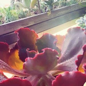 パーティードレスの綴化 年末年始に葉が黄色くなり、見るからに具合の悪そうな様子に😨 軒下の防寒対策をした棚でも危うそうだったので、年明けから一ヶ月くらい室内に入れています。 先週あたりふと見たら色が変わっていて、息を吹き返した色になっていたので安心している最近です。軒下の棚に戻したいのですが、また黄色になられてもこわいので(絶対紅葉じゃない感じだったんですよね)もう少し室内で様子見します。 棚の最低気温がマイナスにならなくなったら戻そうと思います。 この方は寒さにはあんまり強くないのでしょうかね🥺 それとも去年の11月にお迎えして植えつけたからですかね‥