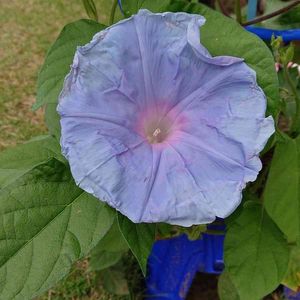 おはようございます🎵 今日はまた違う色の朝顔が咲きました🌼🌿 とってもキレイ✨ そして、とっても大きい😲☝️
