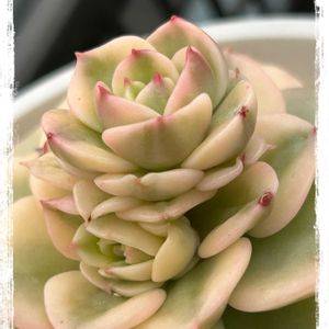 こんばんは✨✨ 🏷️錦の日 右の子 去年お迎えしたドルチェさんの錦苗セットの中で唯一生き残ってる子 『ヌダ錦』🍀 他の子は夏に☆になりました😭 この子は強いのね😊 左はta29Gardenさんでお迎えしたマカベアナ錦🍀 錦のエケベリアはお迎えしてもだいたい夏に☆になるので💦 この子は守りたい😆