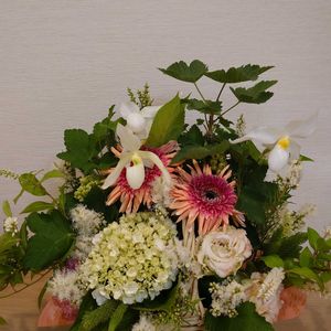 週替りのアレンジ21 おはようございます。 今週は大輪のガーベラとアジサイが印象的なアレンジです。 中でもフリルのトルコキキョウが可愛い💕