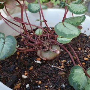 気になっていた原種シクラメン これは原種を品種改良したものなのかな? ハクサンさんの苗でした。 お花が無くてもシルバーリーフが綺麗😊 耐寒−20℃だそうです。 球根が少し出るように浅植えしたらグラグラするんですけど… 大丈夫かな😅
