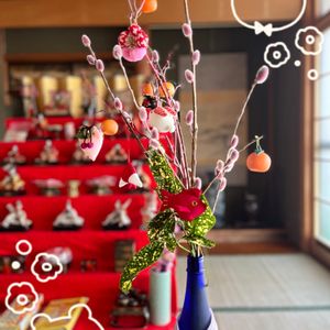 暖かい日が数日続いてる3月3日の 今日は 桃の節句🎎ですね•*¨*•.¸¸♬︎ 健やかに育ってます(色々と🙃)💓 お雛様🎎をバックにお寺WSで作った ちりめん飾りをネコヤナギとモミジの枝と アオキを住職さんの奥様から頂いたので飾り付けてみました😊 いつもより華やかな床の間になってます♥️ 3月もよろしくお願いいたします🙏 ✿ベランダ室内温度(窓全開)6度8:00