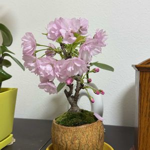 今年もちゃんと咲いてくれた🌸 去年も雪が凄かったから…ダメになったかと思ったけど、 強かった🫡 苔玉にしてるから仕立て直さないと😅 根が伸び伸び😅 一才桜で買ったけど、今年は二才桜?(笑)😄