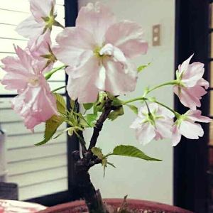 1月に母親に贈ったサクラの苗を、「見に来て~」と連絡があったので行ったら、こんなに開花してた! ミニ桜囲んで、父親とお花見してるそうで…喜んでもらえて良かった! 来年も咲くと良いな🌸