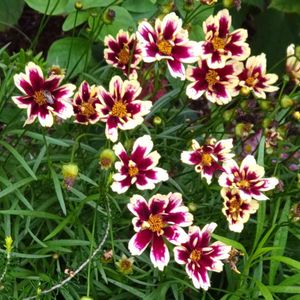 今日のお花 コレオプシス ルビーフロストです。 ルビーのような濃赤桃色の花びらに白い縁が氷の結晶のように入ったイメージ…と言うことからそう名付けられたようです。 とても丈夫で一度植えると年々株が育ち毎年花を咲かせ広がっていきます。 花色は栽培する環境や季節によって変化するとか…。 切戻しで秋まで花を楽しめます。 北アメリカ原産。 キク科コレオプシス属の多年草。
