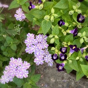 久しぶりに晴れ、朝日を浴びて気持ち良さそうなお花達です。 スーパーべナさん、先日見かけて投稿し、来春は絶対探そうと思っていたら思いがけず近所の園芸ショップで見つけました。 けっこう大きくなってる株で、自分で育てた感が無いし、もうすぐ花も終わりかも…と思いつつも、出会いのチャンスを逃したくないのでお会計へ。 すると、お店の方がレジを通しながら 「冬になったら枯れたみたいになるけど、家の中に入れといたらまた来年咲くよ〜☺」 「その前に挿し芽しといたら、いっぱい増えるからね☺」 などと言って下さり、気分よく連れ帰りました☺💗