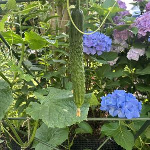 こんにちは🪴😊 我が家のきゅうりと お花たち😊🍀🩷 雨上がりの我が家のお庭