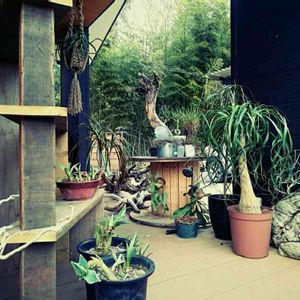 旦那のグリーンたちが外にではじめた~❤今年もウッドデッキは緑いっぱいになりそうだ~✨また冬のことを今から考えなくては(;´д`)