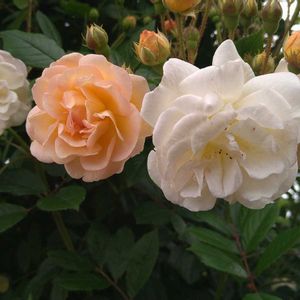 つるバラのハーフアーチ ストロベリーヒルとウォラトンオールドホールが成長して隙間を埋めようとしています わんさか(ってまだいう?)花をつけてくれて嬉しい反面、バラバラと花びらが散るので毎朝の掃除が日課に加わりました 存分に日光を浴びてどんどん成長してほしいなぁ 5枚目はつる繋がりでバラ花壇のレディオブシャロット 昨秋に強めに剪定したのが良かったのか、通常は早春、新しい枝を伸ばしてのびのびしています 花色も今年は濃いです このバラ花壇とハーフアーチは隣り合っているので、間に立っているとフワーッと香りが漂ってきます