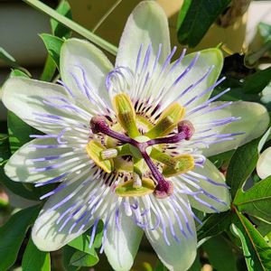 トケイソウ お向かいさんのトケイソウ とっても素敵~😍 植えてあった一株が去年急に竹垣に延び始め たくさんの花を咲かせお向かいさんもビックリ 今年もすごい延び方です