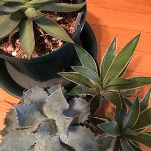 アガベが先週先々週で増えました😌 △姫笹の雪 △五色万代 △雷神 △アガベ マクロアカンサ △シジゲラ ホワイトストライプ 下中央は前からいるホワイトアイス。 初めて購入したチタノタ🌱