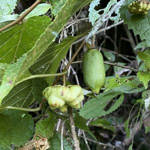マタタビ 花期に枝の上部の葉が白くなるが、それまで気が付かないのは困ったものだ‥ ドングリ型のは正常果💚 ゴツゴツしているのはマタタビミフクレフシというムシコブだが、生薬の木天蓼として珍重されるのはこちら(´ºωº`) 白く見えるのは、表皮と葉緑素を含む葉肉組織の間に空気が入って、光が乱反射する構造だからと言われている♡ 昨日のハンゲショウは花のすぐ下の葉が基部から白くなるけれど、マタタビはいろいろやね(^_-)