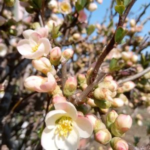 おはようございます☀ 木瓜の花が可愛く咲いてました🤍 花色もたくさんあって綺麗なお花ですね🥰