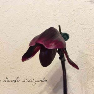 こんにちは(❁´ω`❁) 昨日の血豆パフィオさん🌸 逆光で真っ暗にしか映らないので、壁をバックに(*´艸`)💕 タグは、 Paph.Voodoo Shadow Magic Chance SBM/Joga ×Hamana Queen Nebula Space ってなってるけど、私には解読出来ません😱 お勉強足らず( ̄▽ ̄;) 大文字から始まってるから、原種じゃないものとの掛け合わせって事しか・・・🤣 難しいね(꒪д꒪II