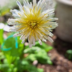 『シロバナタンポポ🤍🌼🍃』 我が家の シロバナタンポポ🤍🌼🍃 咲きました👏 数年前に初めて見つけた シロバナタンポポ🤍🌼🍃 の魅力にはまり 見つけてシロバナタンポポを 根こそぎ抜いて 我が家のプランターに植えて 増やしました‼️ 花友さんにもお嫁入りしましたよ‼️ そちらでも、花を咲かせて 増やしてほしいですね‼️