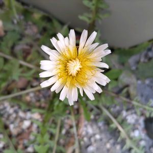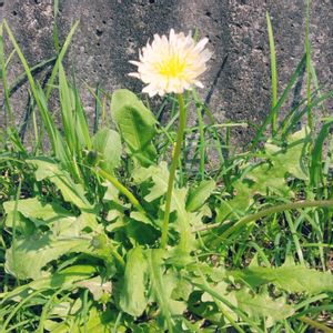 白いタンポポ 中学校の花壇下に 朝のウォーキングで🚶♀️