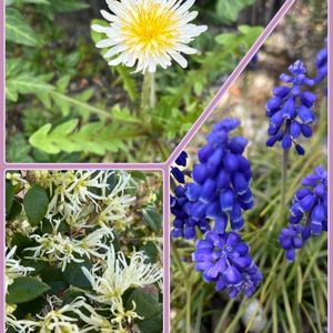 🌸 白いたんぽぽ 🌸 ムスカリ 🌸 トキワマンサク 今年も同じ場所から白いたんぽぽ🥰