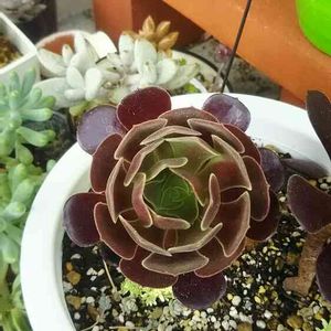 皆さま~🎵こんばんは😃🌃 今日は午後から晴れたので アエオニウム組を日光浴💕 まだ休眠準備には入ってないみたいです☺️ このところ肌寒いからかな❔ ちなみに大きな黒ちゃんの根元には、少し焼けてしまった サンバーストと夕映えが隠れてます😆 ホームセンターから連れ帰ったはいいけど、太陽に当てるのが早かった…😅 またひとつ勉強になりました😁✌️