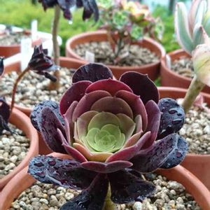 おはようございます 久々の雨で雨晒し放置組は喜んでます うちにはアエオニウムもお二方いまして、レモネードとベロア(カシミアバイオレット)様となります どちらも夏越しは辛そうでしたがお目覚め後はお水に一喜一憂の日々 でもあんまりあげないw