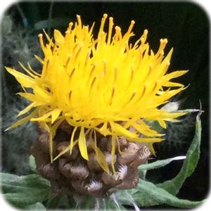 紫竹ガーデンにて。 ベニバナだと思っていたら、 黄金矢車菊だと一年経ってわかりました。
