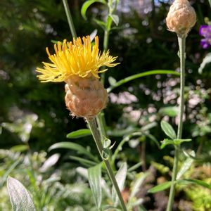 小さな庭に咲き始めました。 ずっと花が咲かなかったけど冬でも平気だった🎶蕾も変な形でお名前は? googleレンズで調べてみると “黄金矢車菊”と出た😅