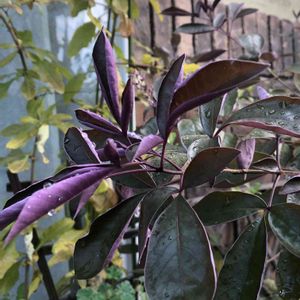 ミツバハマゴウ・プルプレア 雨上がりの朝〜 紫が濃くなりキレイな葉裏✨✨ この時期、我が家は葉っぱを楽しみます😅 と言うか今咲いているのは、オマケで頂いた小さな白いビオラとPWのスイートアリッサム、ガーデンシクラメンだけ💦でも、この葉ももうすぐ落葉😞 あとはGSで皆さんの投稿を楽しませて下さい❣️ そんなズボラガーデナーです🥲