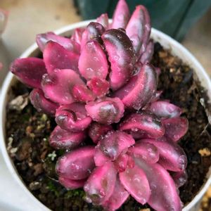 姫秀麗とアトランティスの芽 寄せ植え解体中の親株さんの根元から 真っ赤なお子ちゃまが顔出し ぷっくりした姫秀麗と一緒に 可愛いいツーショット親株さんは✂️かな