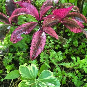 斑入りミズヒキ 去年いつも行く山野草のご主人から頂いた株からタネが飛んで色々な場所から顔を出しています。この場所は親株さんから5mほど離れた所です☺️飛びましたねぇ〜〜* 嬉しい💓💓