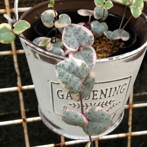 斑入り美男カズラ(サネカズラ) 小さな蕾が3つ付いてました❣️ 無事に咲いてくれるといいのですが💦 吊り鉢にしたので、手前にワイヤー写り込みました😅🙇♀️ 🏷金曜日の蕾たち 参加します🪴