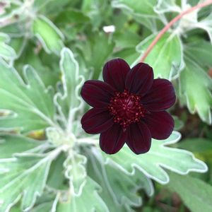 チョコレートコスモス、チョカモカ おはようございます😃 ポツポツ咲き始めたチョカモカが イソギクの葉とコラボしてました😍 去年はうどん粉病にやられて酷かったけど 冬越しした今年は今のところ大丈夫😅 このままたくさん咲いて欲しい💕