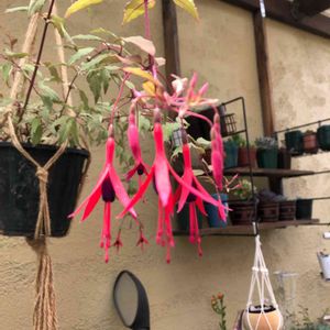 フクシアトリカラー おはようございます☔️🍃どしゃ降り 斑入りカラーリーフが綺麗だなぁと 3月に迎えたフクシア咲き始めました 美人さんですね🥰自転車置き場で少し雨避けてるけど 風が強いのでピント合わせが難しい💦