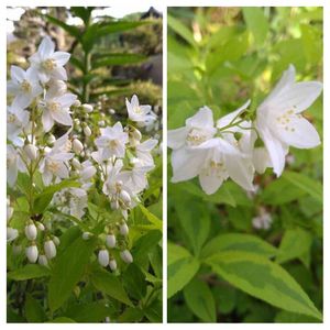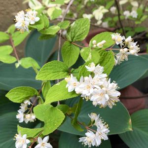 マルバウツギ斑入り ギボウシ 先日山野草のお店で一目惚れ ヒメウツギ、バイカウツギと 少し違う花の可愛さにズキューン💘 この樹形をどう活かそうか思案中🪴
