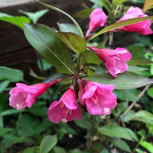おはようございます 今日のお花 銅葉紅ウツギ🌸 昨年花友さんから花後の枝を何本か頂き 挿木して根付いた😊銅葉色が薄いけど💦 ここはさくらんぼ🍒の木の下の地植え 残りは鉢植えにしてあります🪴 たくさん咲いて欲しいな〜🌸🌸🌸