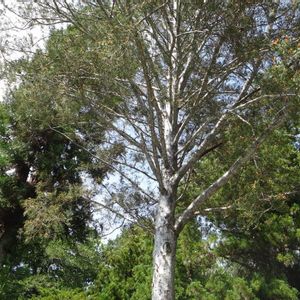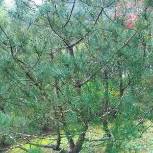 白松(音読みでハクショウ) 「三鈷の松」サンコノマツ マツ科マツ属 中国北西部を原産 葉の様子がインドの武器をモチーフにした金属製の仏具「鈷」に似るため、別名をサンコノマツ 針葉は3葉 樹皮が非常に特徴的 滑らかで斑模様に剥がれ、ある種の広葉樹の樹皮を思わせる。さらに成長すると白一色に変わる