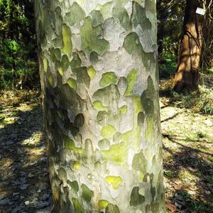 シロマツ(白松) マツ科マツ属 別名ハクショウ・サンコノマツ(三鈷の松)・三葉の松 樹皮が非常に特徴的で若い時からマツとは思えないほど滑らかで斑模様に剥がれ、ある種の広葉樹の樹皮を思わせる。 さらに成長すると白一色に変わる。 6月1日 場所:長野県 諏訪大社下社秋宮