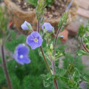 ベロニカミフィーブルートが咲き始めました🌱 素朴で可愛い(*^-^*)💓 班入りの葉っぱもお気に入りです(〃^ー^〃) これも沢山増やしてあちこちで咲いてます🙋