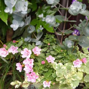 アレナリアモンタナとブラキカムブラスコ(*^^*)両方挿し芽っ子をポットに一緒に植えたものでーす。