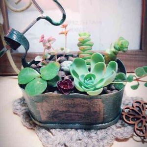 コンビーフ缶のリメ缶にお家の僅かな多肉ちゃんとセダムを集めてみました(*^^*)
