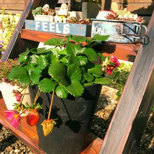 イビツなイチゴだけども…🍓 イチゴはイチゴ🍓 花がいっぱいだから楽しみー🍓