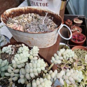 「ビアーポップ」 🏷つぶつぶの日🏷に参加させて頂きます🎶 寄せ植えにした、1年2ヶ月のビアーポップちゃんです。 植え付けた時は、上を向いていたけど、今は葡萄になったつもりで、垂れ下がっています。(笑) めちゃくちゃ大きくなりました。